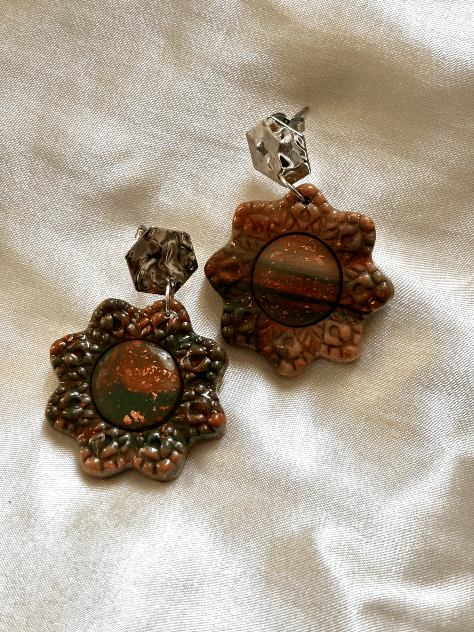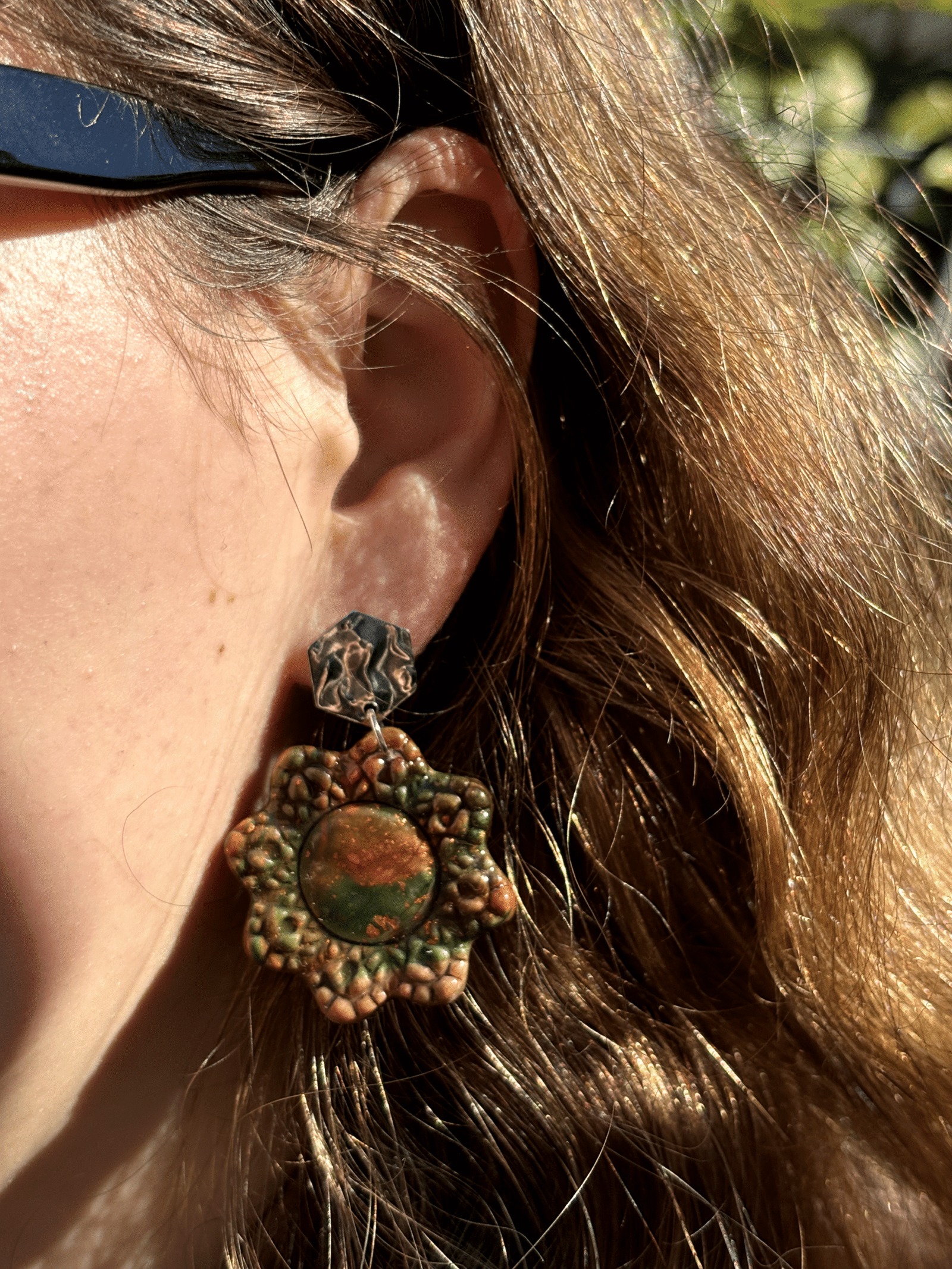 Boucles d’oreilles uniques faites à la main en pâte polymère et acier inoxydable. Légères, élégantes et pleines de charme, chaque paire est une création exclusive qui sublime votre style. ✨🎨