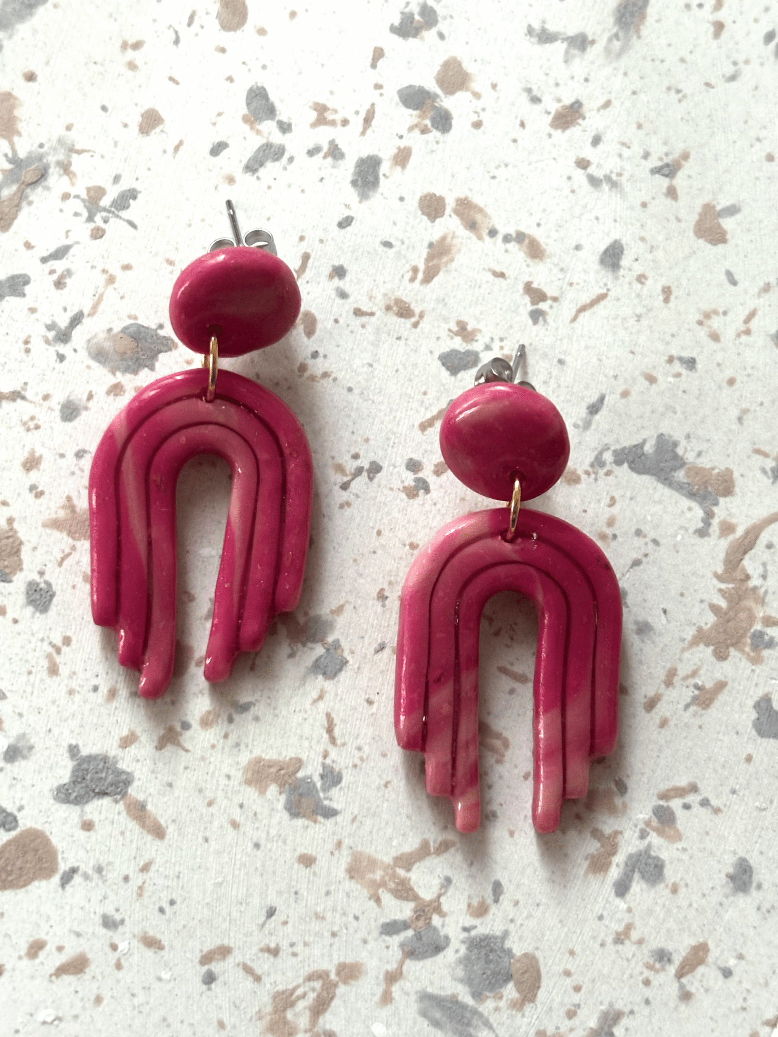 Boucles d’oreilles uniques faites à la main en pâte polymère et acier inoxydable. Légères, élégantes et pleines de charme, chaque paire est une création exclusive qui sublime votre style. ✨🎨